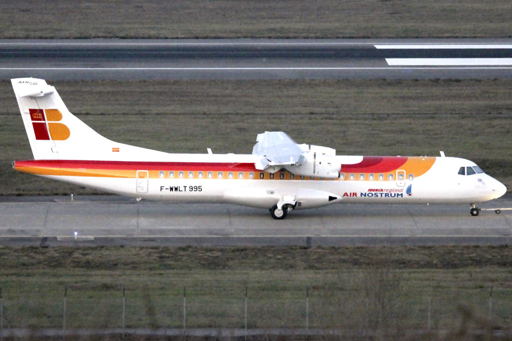 En unas semanas Air Nostrum recibirá el primero de sus diez nuevos aviones ATR 72-600 una vez ATR haya completado sus pruebas. El avión, número de serie 995 y con matrícula de pruebas F-WWLT, como se puede ver en esta foto, está a falta de la instalación de los motores para poder realizar las pruebas funcionales en tierra previas a su primer vuelo.