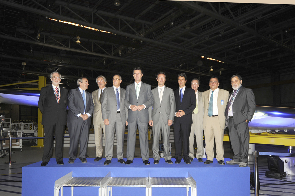 Finalmente, el ministro de Industria, Energía y Turismo, reconoció que “en los últimos años en toda Europa, y especialmente en España, hemos asistido a una preocupante disminución del peso del sector industrial en el conjunto de la economía. Y ello ha ocurrido en paralelo a un aumento a la participación del sector de los servicios”. Para seguir señalando que “no podemos permanecer impasibles ante la caída del peso de la industria por muchas razones, pero principalmente, porque tal y como hemos visto a lo largo de estos últimos años responden mejor en tiempos de dificultades aquellas economías cuyo peso industrial es más fuerte, y por eso el Gobierno de España, dentro de su política de economía tiene como una prioridad fundamental acometer un proceso de reindustrialización que nos lleve a aumentar y mejorar cualitativamente y cuantitativamente el peso del sector industrial en nuestra economía. Lo cual deberá suponer un aumento del sector manufacturero, pero también de la mano de un aumento del peso de la industria basada en las telecomunicaciones: sociedad de la información, E-contenido, las propias telecomunicaciones, y muy particularmente tenemos el convencimiento de que puede venir de un mayor desarrollo de la industria aeronáutica. Lo estamos viendo hoy aquí”.
