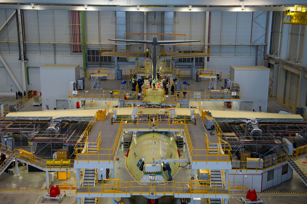 Este avión se encuentra ya en la denominada Estación 40, donde se lleva a cabo, desde la primera semana de febrero, la unión del fuselaje con el ala y las superficies de cola. El montaje del avión comenzó en el mes de noviembre cuando comenzaron a llegar las piezas que conforman el fuselaje y que fueron las primeras en ser unidas entre sí. Una vez completado el montaje de estas piezas, el avión será trasladado a otra estación donde comenzarán las pruebas de todos y cada uno de los sistemas del mismo.