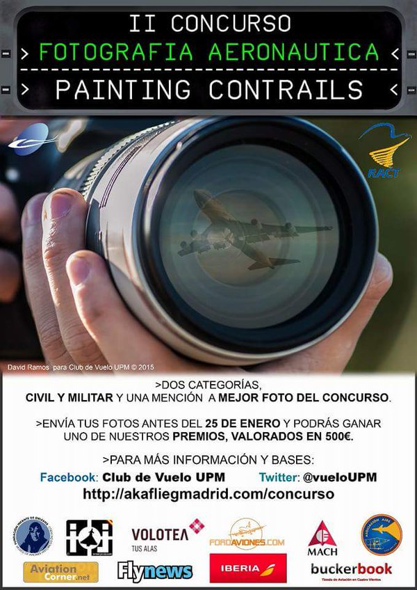 Fly-News respalda el II concurso de Fotografía Aeronáutica organizado por el Club de Vuelo de la Universidad Politécnica de Madrid. La temática es la aeronáutica y habrá dos categorías diferenciadas; Aviación Civil y Aviación Militar. El plazo de entrega de fotografías finalizará el 25 de febrero de 2016.