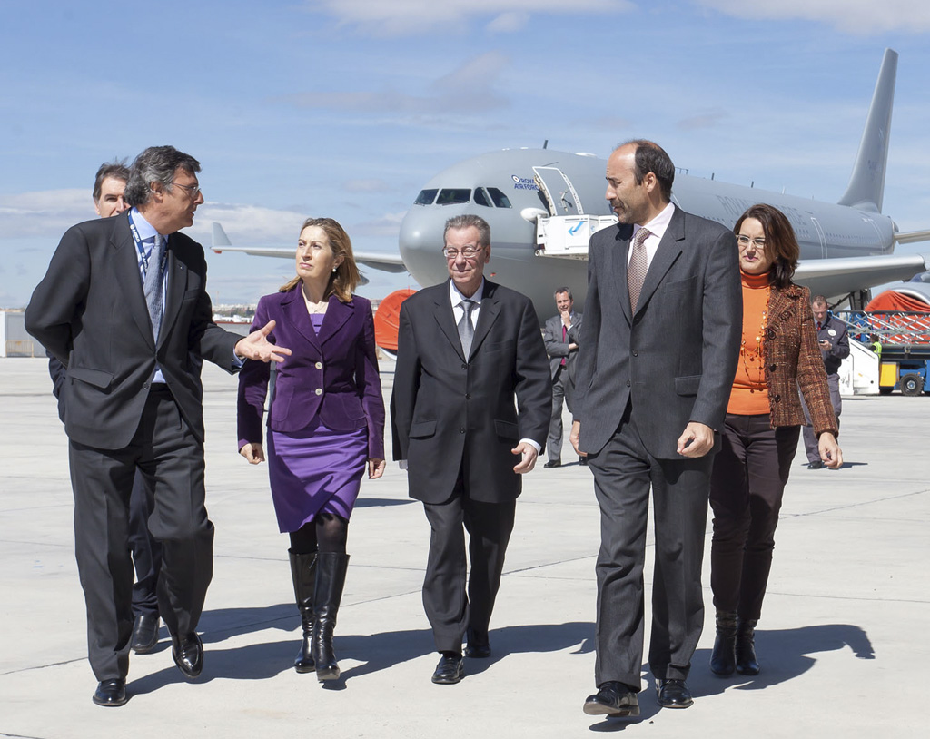 Durante su visita a las instalaciones de EADS en Getafe, la ministra de Fomento, Ana Pastor, ha recorrido diversos hangares donde se realiza la fabricación y montaje de piezas y componentes de diversos aviones, así como donde se realizan los trabajos de modificación de aviones Airbus A330 a A330 MRTT y los ensayos estructurales del Airbus Military A400M Grizzly.